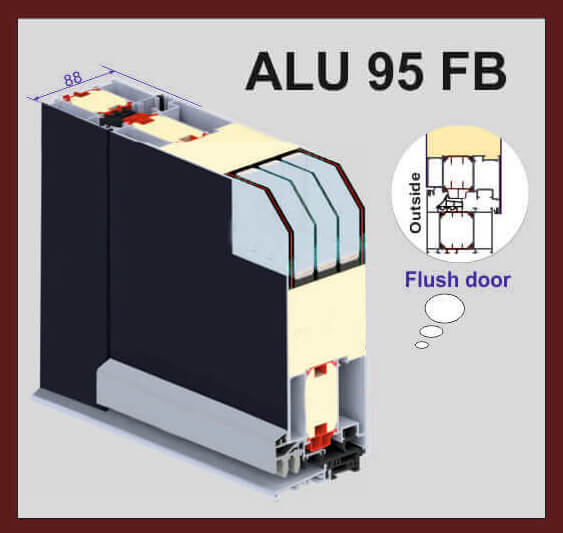Flush door ALU95 FB system is 100% aluminum with 4 seals.