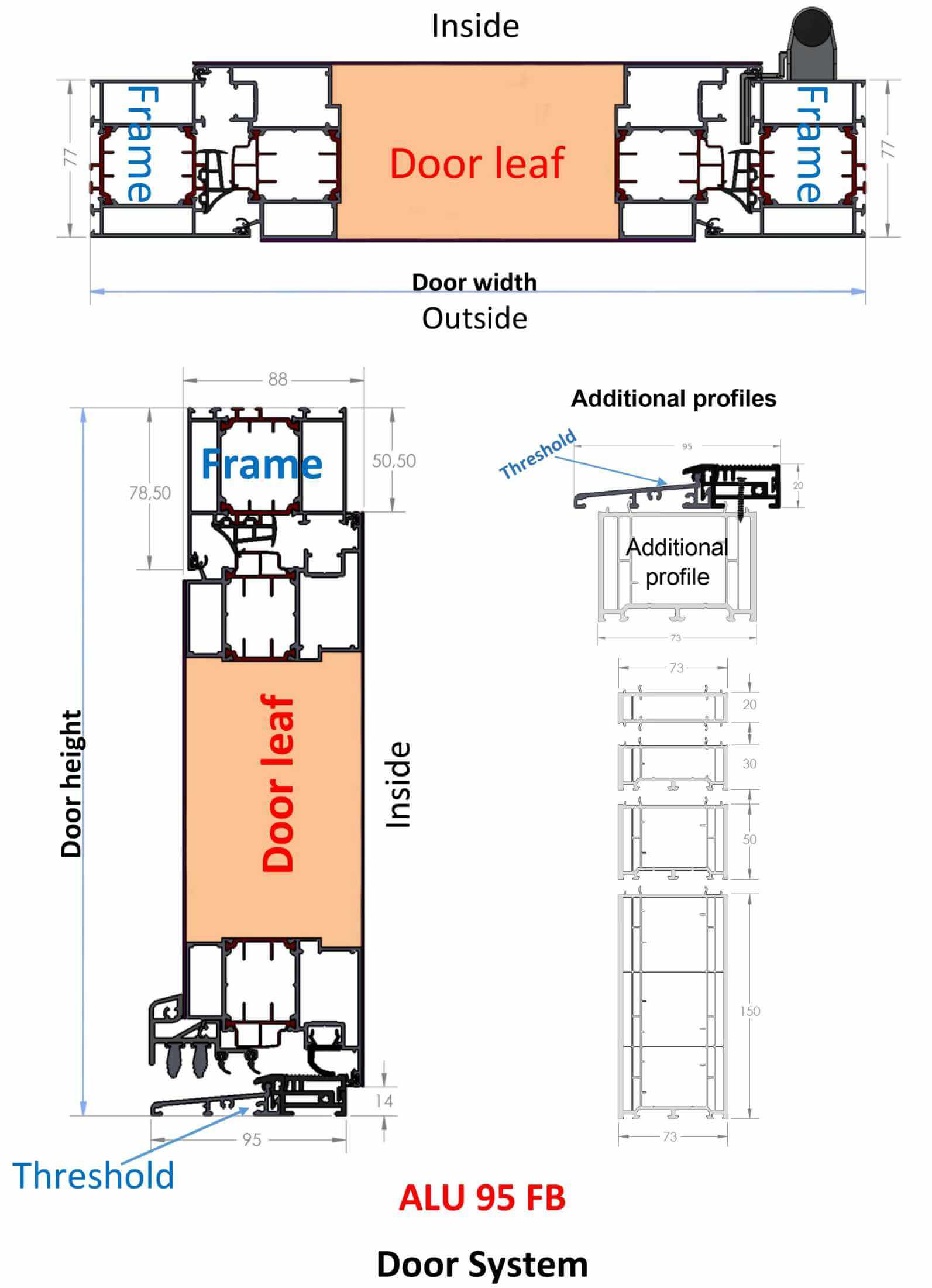 ALU95 FB are our standard full aluminum door system, made in a special, very strong aluminum, with a total depth of 88 mm.