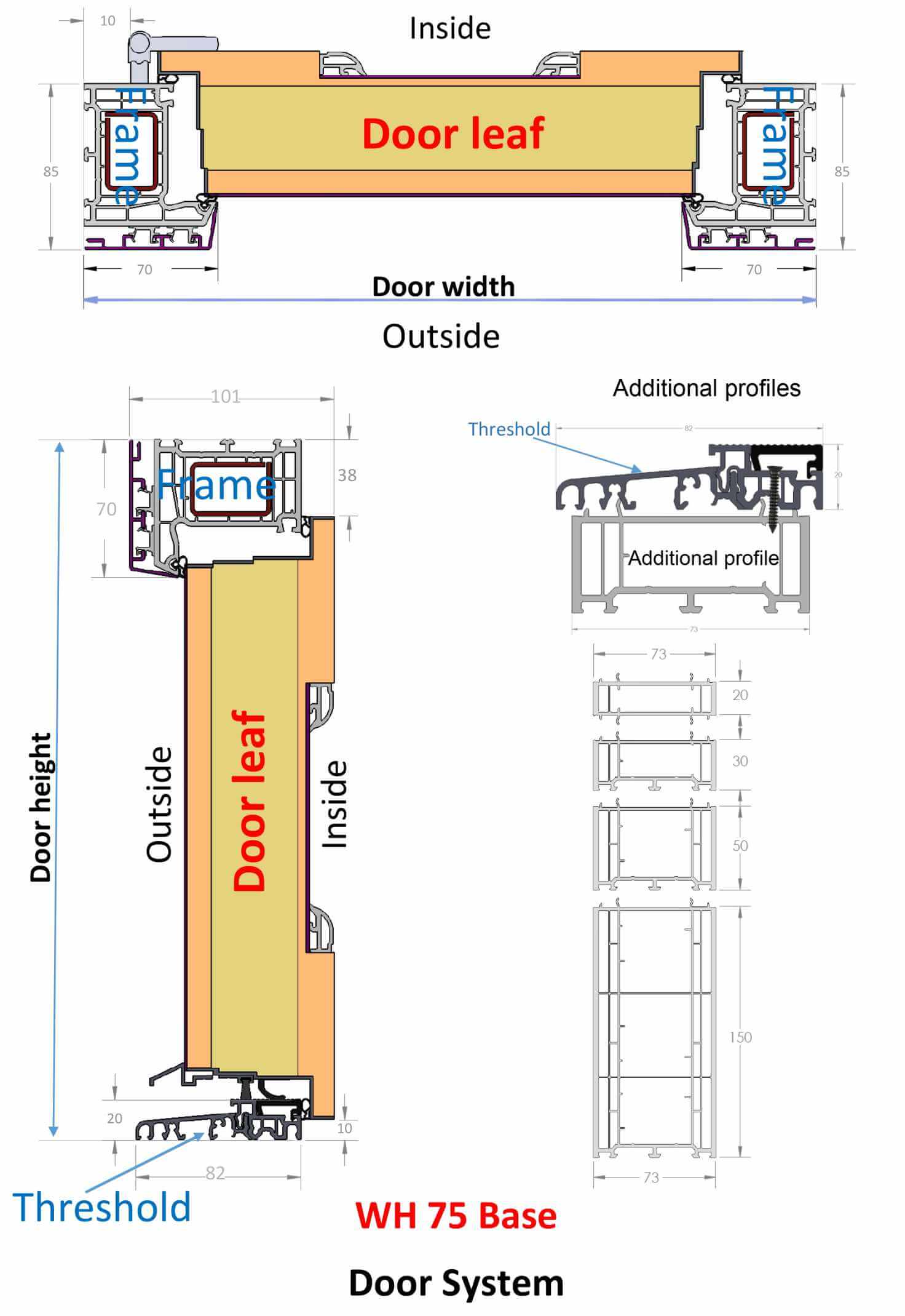 WH 75 are our standard doors made from a combination of aluminum and PVC with a total depth of 101 mm.