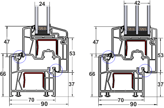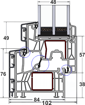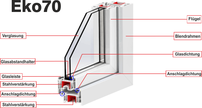 - Profilkammern: Um eine gute Wärmedämmung erzielen zu können, sind die Profile in mehrere Kammern unterteilt