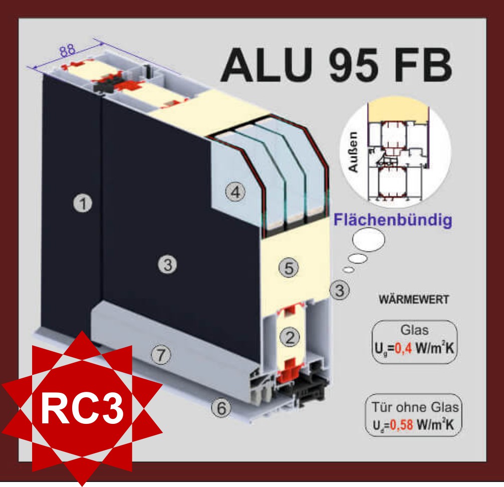 ALU95 FB ist unser Flächenbündig Vollaluminium -Türen System, entstanden aus einem speziellen, sehr starken Aluminium mit einer Gesamtbautiefe von 88 mm.