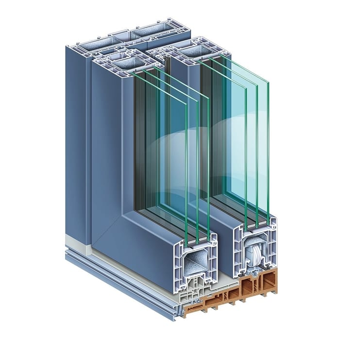 Die Kunststoff Hebe-Schiebetür mit aufgeklippster Aluminium-Vorsatzschale kombiniert die Vorzüge beider Werkstoffe in einem Bauelement. Außen bietet die Aluminium-Vorsatzschale nahezu unbegrenzte Farbmöglichkeiten, innen garantieren Kunststoffprofile geringen Pflegeaufwand, Formstabilität sowie hohe Funktionssicherheit.