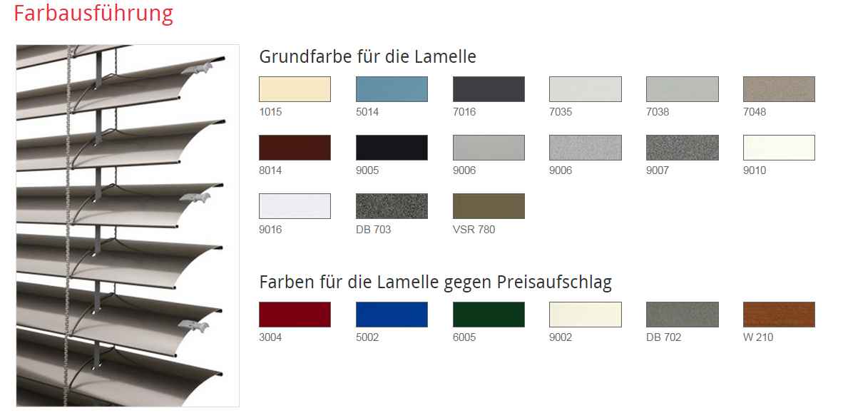 - * Hinweis: Mit der zunehmenden Breite der Jalousie sinkt die Qualitätsstufe ihrer Windbeständigkeit – s. Windbeständigkeit, weiter unten auf der Seite.