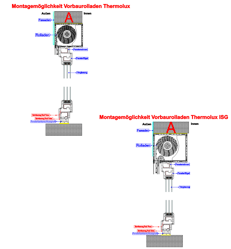 Im Gegensatz zum Vorbau-Rollladen wird der Rollladenkasten hier direkt auf das Fensterelement aufgesetzt. So können Rollladen und Fenster effizient in einem Arbeitsschritt montiert werden.
